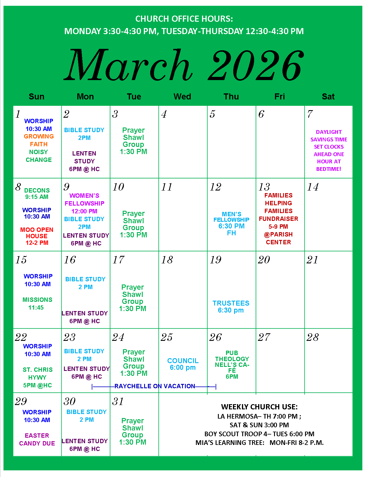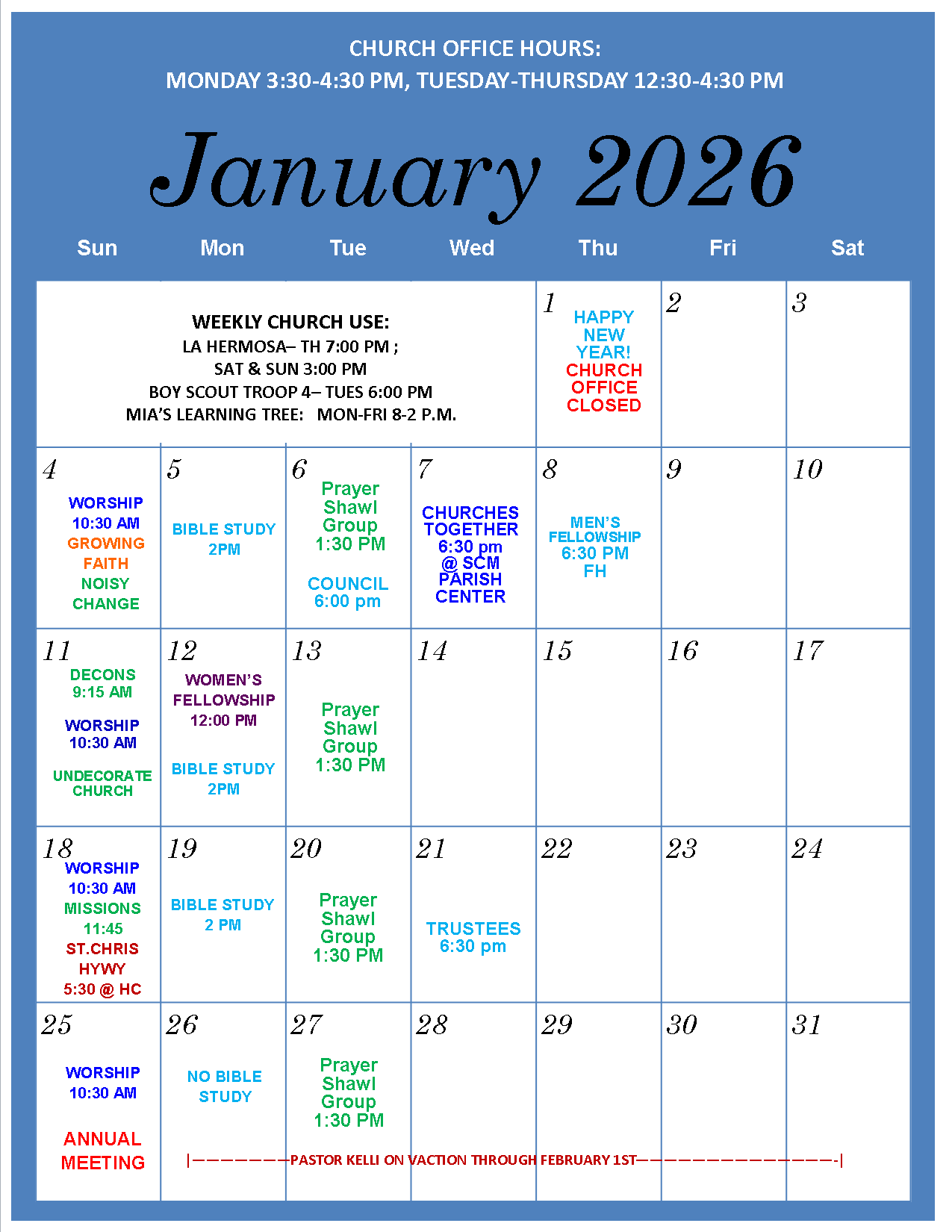 Women's fellowship meets monthly.